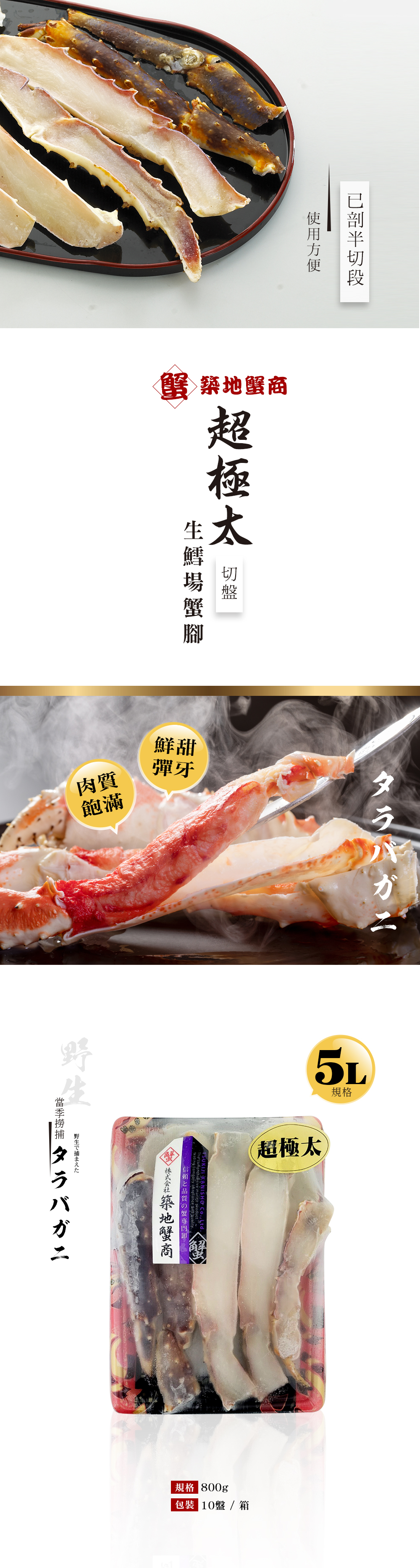 - ◎最高等級紅蟹品種タラバガニ, 只挑選超大規格5L以上蟹腳加工!!